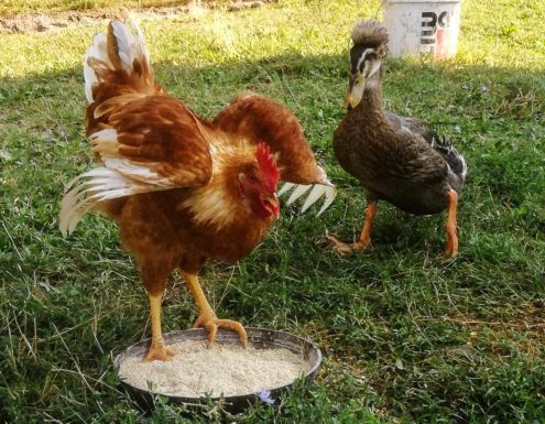 On the ranch we currently have one horse (Troyan), three goats (Tonka, Zvonka i Lola), one sheep (Mary), one rooster, several chicken (laying eggs), several ducks, several rabbits, a tiger parrot Piki and never or least our Asi (the Terrible). There are always a few neighbors’ cats around, and a regular guest is dog Zhucko from a neighboring village who has an eye on Asi. And the number of pets is constantly growing.